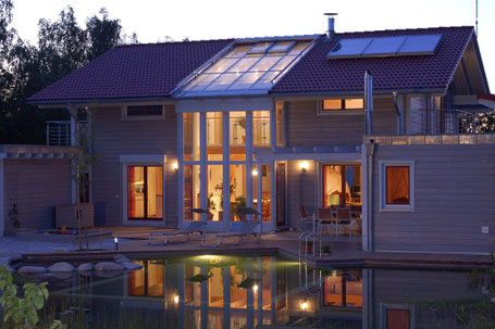 Clever sun protection blinds which react to the amount of sunlight and shut automatically when it becomes too windy, as well as high quality heat pumps which cool the house, give great comfort.